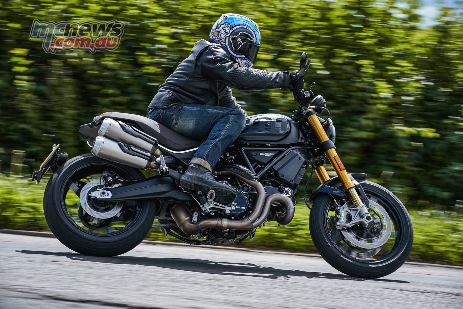 . At the front, a 320 mm diameter double disc has been fitted to two Brembo M 4.32B monobloc four-piston calipers with radial connection The Ducati Scrambler 1100 Sport Pro is, well, sportier with a new, narrower, and shorter handlebar with café racer-style mirrors, and Öhlins suspension